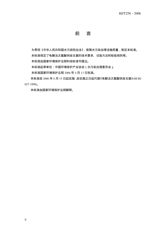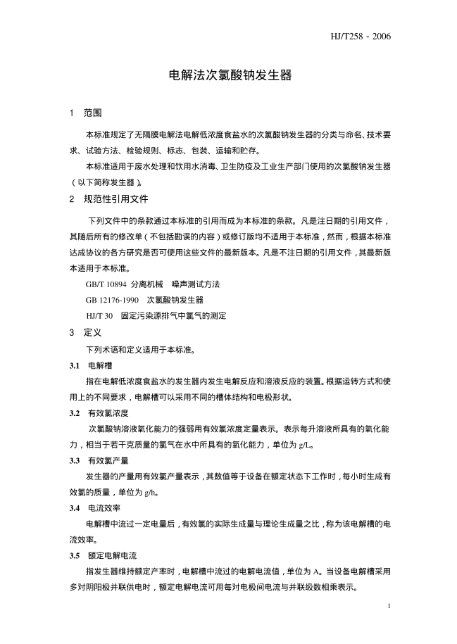 次氯酸鈉發(fā)生器行業(yè)標(biāo)準(zhǔn)