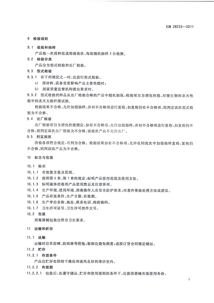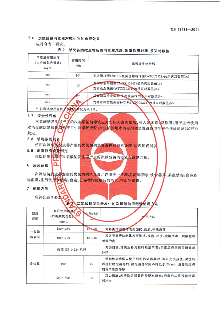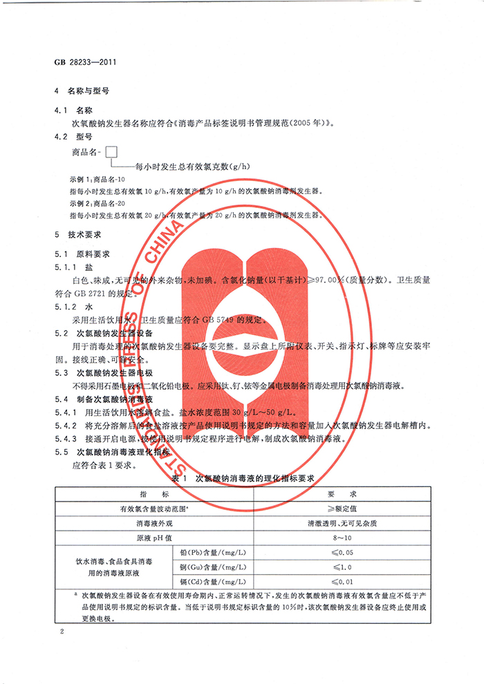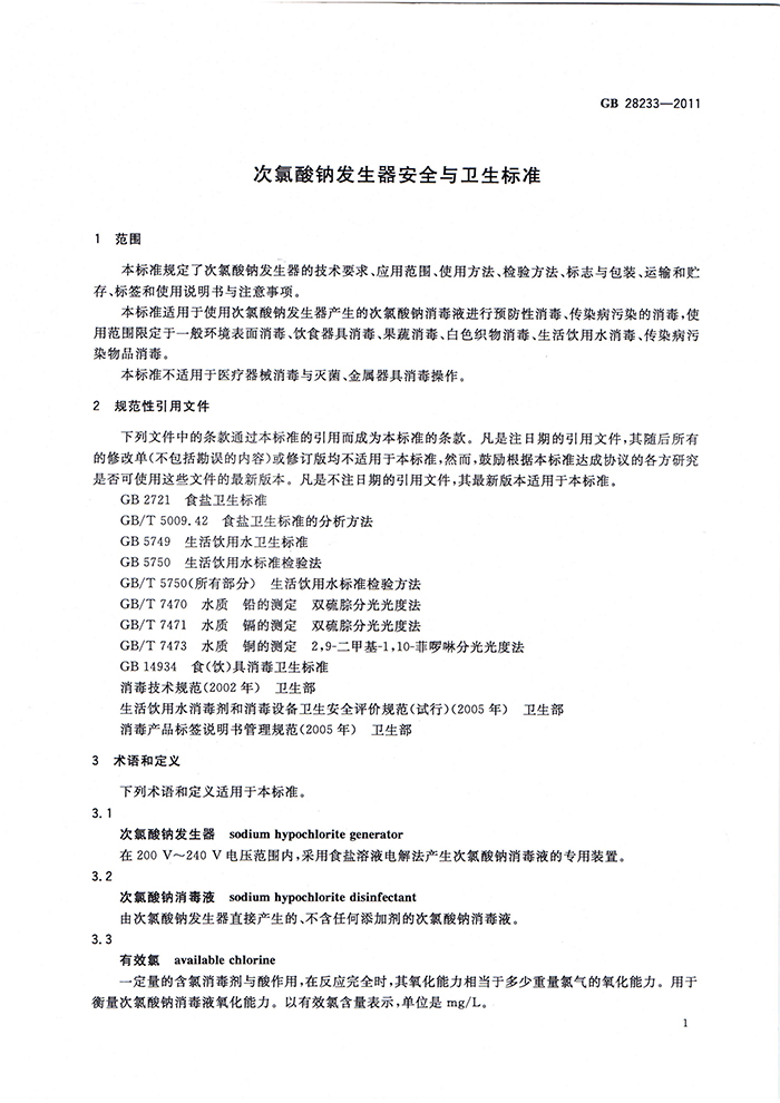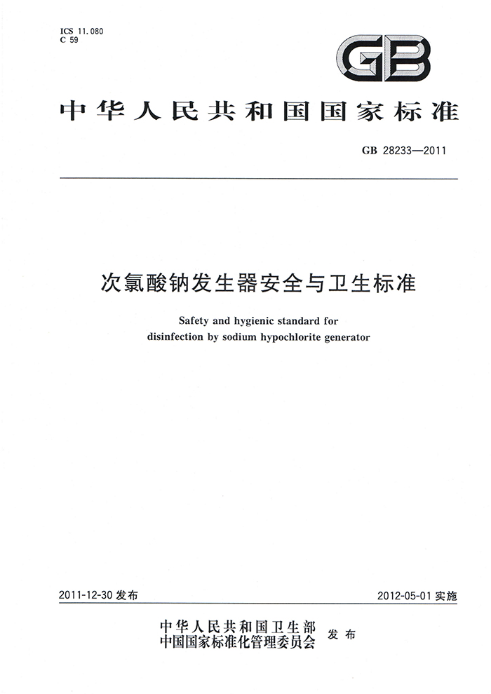 GB 28233-2011 次氯酸鈉發(fā)生器安全與衛(wèi)生標(biāo)準(zhǔn)