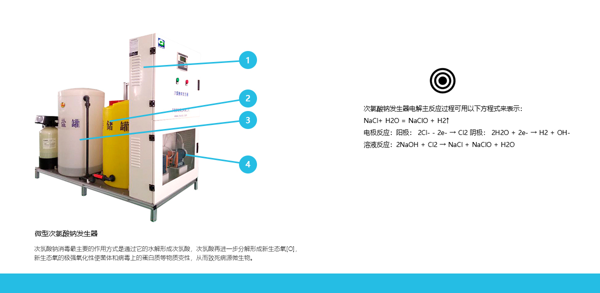 次氯酸鈉發(fā)生器電解主反應(yīng)過程可用以下方程式來表示: