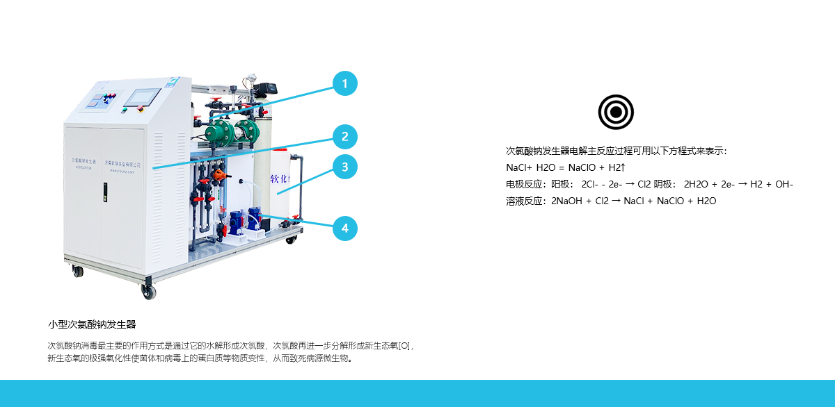 次氯酸鈉發(fā)生器電解主反應(yīng)過程可用以下方程式來表示: